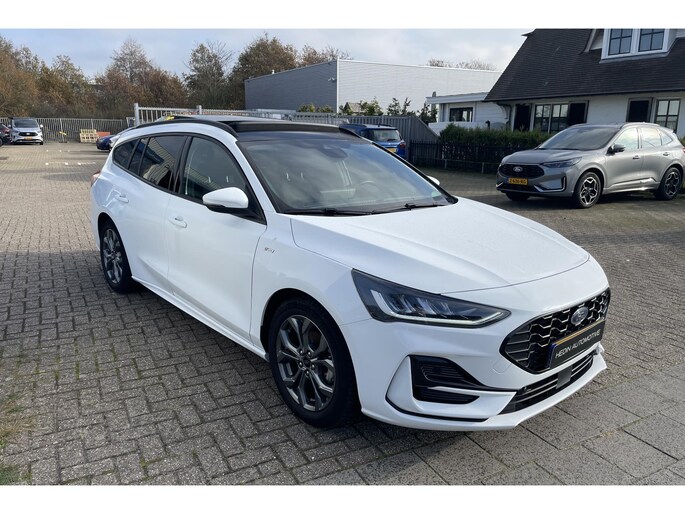 Uitmuntende prestaties, dynamische rijeigenschappen en bakken vol met rijplezier, deze Ford Focus Wagon levert het allemaal. Deze auto uit 2023 heeft nauwelijks gereden, met een tellerstand van slechts 12537 kilometer. Met zijn benzinemotor en handgeschakelde zesversnellingsbak is dit een prima auto voor nog vele kilometers. Even op het knopje drukken en de elektrisch bedienbare achterklep gaat open. Net zo gemakkelijk als het elektrisch bediende glazen panorama dak. Winter... Eerst krabben, dan genieten van de stoelverwarming. Zo'n verwarmd stuurwiel is een comfortabele extra, zeker in de winter. Ook 17 inch lichtmetalen velgen, Full LED koplampen, sportonderstel, geluidsisolerende ramen, in delen neerklapbare achterbank en LED-achterlichten horen tot de voorzieningen op deze auto.