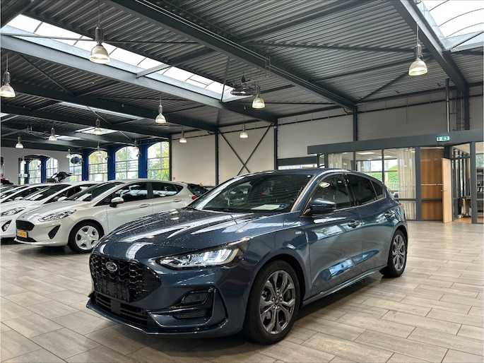 De Ford Focus ST-Line is de sportieve tak van de Focus-familie. Aan de sportieve bumpers, sideskirts en lichtmetalen velgen is meteen te zien dat dit geen standaard Focus is. Het onderstel is ook aangepast en 1 cm verlaagd voor een nog betere wegligging. Net zoals de meer standaardauto's biedt deze Focus een zee van ruimte. Op de achterbank is genoeg ruimte om als volwassene achter jezelf te kunnen zitten. De bekleding is uitgevoerd in zwart stof met prachtige rode stiksels. Deze auto is bovendien geleverd met verlengde fabrieksgarantie tot januari 2029, wat betekent dat u nog jarenlang kunt genieten van zorgeloos rijplezier, volledig gedekt door Ford zelf.