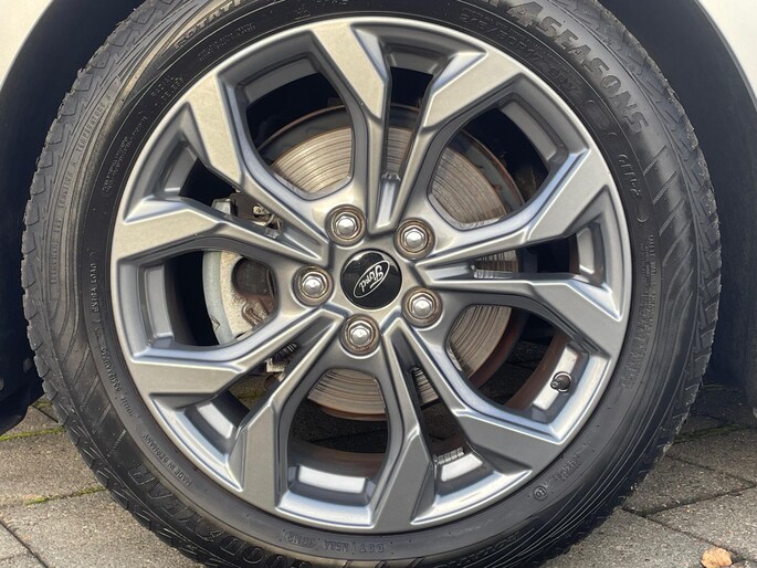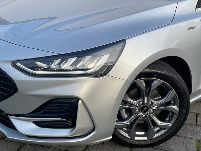 De ST-Line is de sportieve versie van de Ford Focus, en dat is duidelijk te zien. Met zijn sportieve bumpers, sideskirts, en 17-inch lichtmetalen velgen springt deze Focus direct in het oog. De rode stiksels in het interieur en de zwarte hemelbekleding geven het interieur een dynamische uitstraling die perfect past bij het sportieve karakter van de auto. Het onderstel is ook aangepast, waardoor de Focus nog strakker stuurt en een sportieve rijervaring biedt.