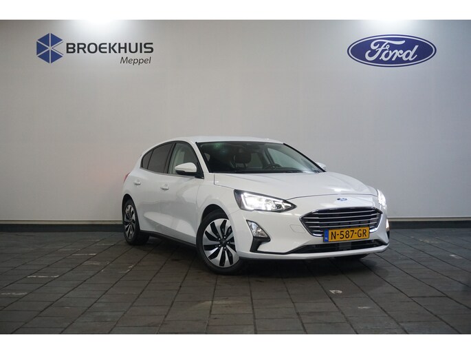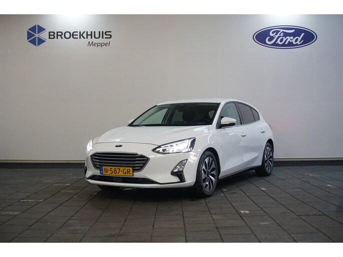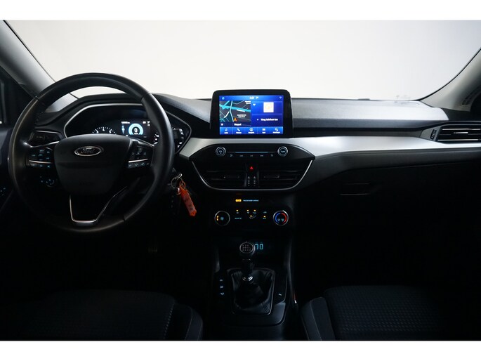 Hij is stijlvol en comfortabel, deze Ford Focus, en hij is ontworpen om u veilig en comfortabel te laten rijden onder alle omstandigheden. De benzinemotor geeft deze auto sportieve prestaties en zorgt voor een laag brandstofverbruik. U blijft ook in de scherpe bochten goed ondersteund door de fraaie sportstoelen. Tot de uitrusting behoren ook 16 inch lichtmetalen velgen, LED koplampen, dakspoiler, in delen neerklapbare achterbank, verstelbare lendensteunen en snelheidsafhankelijke stuurbekrachtiging. Spraaksturing is onderdeel van de uitrusting van deze auto. Met uw stem kunt u de belangrijkste voertuigfuncties bedienen. Dankzij Connected Services heeft u overal en altijd uw dashboard op zak. Alle belangrijke functies zijn te checken via de app. Selecteer uw reisbestemming en het full map navigatiesysteem brengt u snel waar u moet zijn. Bij het wisselen van rijbaan kan een dode hoek ontstaan waardoor achterliggers te dichtbij kunnen komen. De achteropkomend verkeer waarschuwing geeft in dat geval automatisch een signaal. Voor storingvrije digitale radio-ontvangst zorgt de DAB-ontvanger. Wat u ook in deze auto kunt vinden zijn parkeersensoren achter, cruise control, airconditioning, lederen stuur, centrale deurvergrendeling met afstandsbediening en boordcomputer. Aan boord van deze Ford houden verschillende geavanceerde systemen voor u de weg in de gaten. Ze waarschuwen u voor noodsituaties en kunnen in een aantal gevallen ook zelf ingrijpen. Met het Lane-keeping systeem gaat u nooit onbedoeld over de streep. Forward collision warning waarschuwt bij een dreigende aanrijding en vermindert de gevolgen van een ongeval. In deze Ford vinden we verder een hill hold functie, brake assist en bandenspanningcontrolesysteem. Klinkt dit allemaal aantrekkelijk? Maak dan een afspraak met onze verkoper!