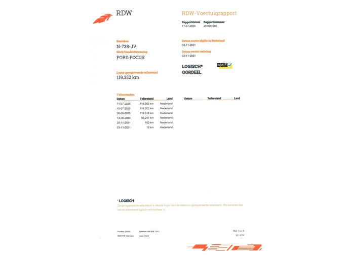 Kilometerstand gecontroleerd