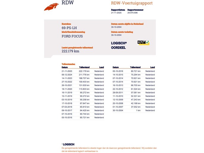 Kilometerstand gecontroleerd