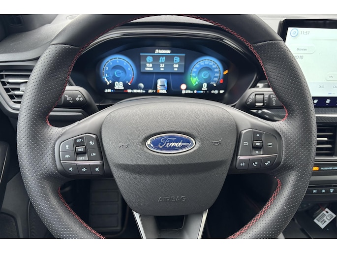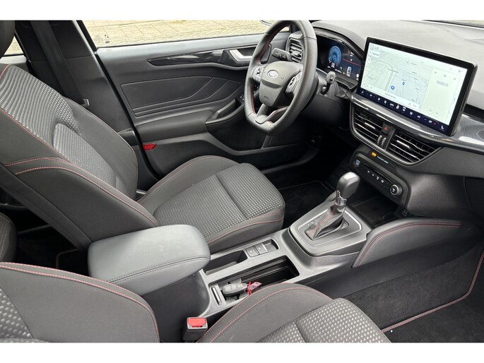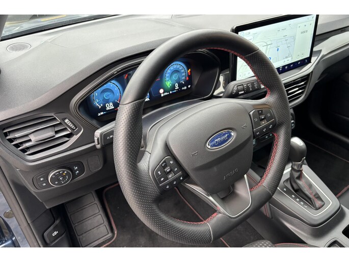 Alle technologie in de Ford Focus Wagon is er op gericht om jouw rit veilig en gemakkelijk te laten verlopen. De aandrijving van deze Ford wordt verzorgd door een driecilinder benzinemotor en een automatische transmissie. Rijden met pit? Geen punt! De sportstoelen geven steun en stevigheid! Bij de uitrusting van deze auto horen onder meer 17 inch lichtmetalen velgen, Full LED koplampen, sportonderstel, geluidsisolerende ramen, in delen neerklapbare achterbank en LED-achterlichten.