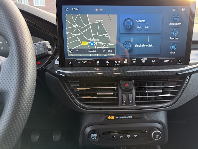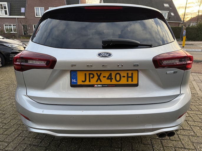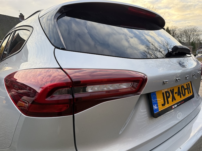 Deze Ford Focus Wagon is 'connected'. Belangrijke functies worden permanent gemeten en zijn uit te lezen via een speciale app, ook op afstand. Met spraakbediening of de knoppen op het stuur regelt u het audio-installatiesysteem en het full map navigatiesysteem, terwijl u uw blik op de weg gericht houdt. De audio-installatie biedt daarbij glasheldere ontvangst dankzij DAB-ontvangst. Op een drukke weg heeft u soms ogen in uw achterhoofd nodig. De sensoren aan de achterzijde nemen die functie over en geven een achteropkomend verkeer waarschuwing als een achterligger te dicht op u zit. Dankzij automatische airconditioning is het interieur behaaglijk warm of verfrissend koel. Geen parkeervak is te klein dankzij de assistentie van de parkeersensoren. U bent in deze Ford ook voorzien van WIFI-hotspot, regensensor, cruise control, sportstuurwiel, automatisch dimmende binnenspiegel en centrale deurvergrendeling met afstandsbediening.