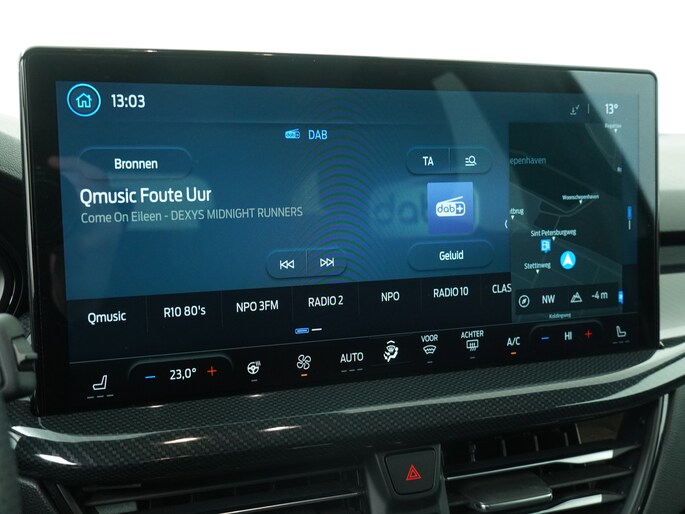 Centraal op het dashboard, onder handbereik ziet u het grote touchscreen. Naast navigatie en bluetooth is het ook mogelijk om via Apple Carplay of Android Auto uw telefoon te koppelen. U kunt dan apps als Google Maps of Spotify op het grote scherm bedienen. Zo hoeft u nooit meer de navigatiekaart te updaten en staat u nooit meer onnodig lang in de file door zeer nauwkeurige verkeersinformatie. Het koppelen gaat draadloos zodat u de telefoon niet meer uit uw broekzak of jaszak hoeft te halen.