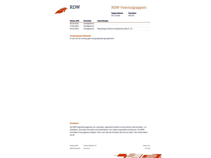 | Wegenbelasting/3mnd | € 447 - € 469 |