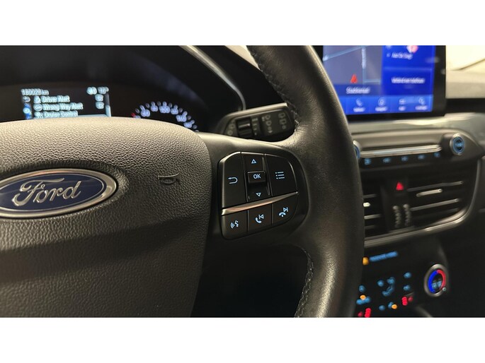 Met de achteruitrijcamera ziet u precies wat er achter de auto gebeurt. Adaptive cruise control houdt de ingestelde snelheid vast en houdt automatisch afstand tot uw voorligger. Gemak dient de mens. Dankzij de spraaksturing bedient u de belangrijkste functie met uw stem. Deze Ford Focus Wagon is 'connected'. Belangrijke functies worden permanent gemeten en zijn uit te lezen via een speciale app, ook op afstand. U rijdt snel, zuinig en zeker naar uw bestemming met het navigatiesysteem. U bent in deze Ford ook voorzien van WIFI-hotspot, achteropkomend verkeer waarschuwing, draadloos opladen, DAB ontvangst, sportstuurwiel en airconditioning.