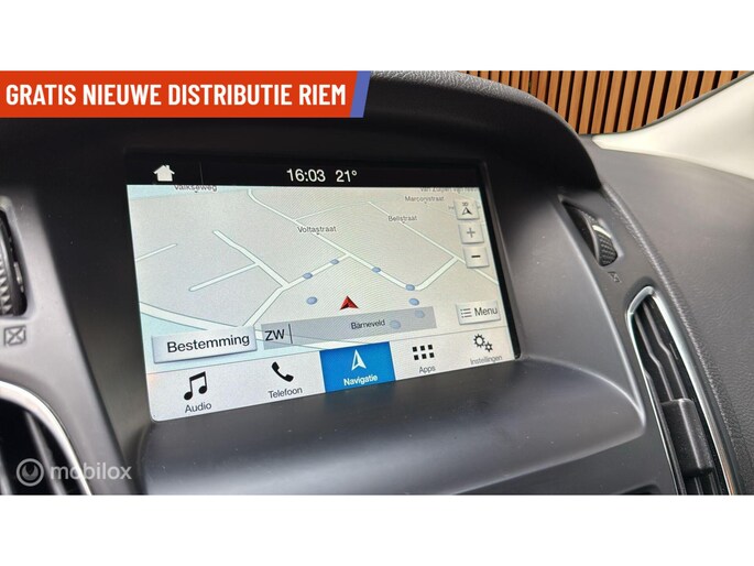 Dankzij de spraaksturing bedient u verschillende functies zonder uw handen van het stuur te halen. Selecteer uw reisbestemming en het navigatiesysteem brengt u snel waar u moet zijn. Parkeerplekken worden er niet ruimer op. Maar met de aanwezige parkeersensoren krijgt u deze Ford Focus zonder problemen op z'n plaats. De regensensor in de voorruit schakelt de ruitenwissers automatisch in en uit. Cruise control is ook een van de meegeleverde opties. Ook is de Ford uitgerust met: airconditioning, met startonderbreker, isofix-aansluiting, centrale deurvergrendeling met afstandsbediening en boordcomputer.