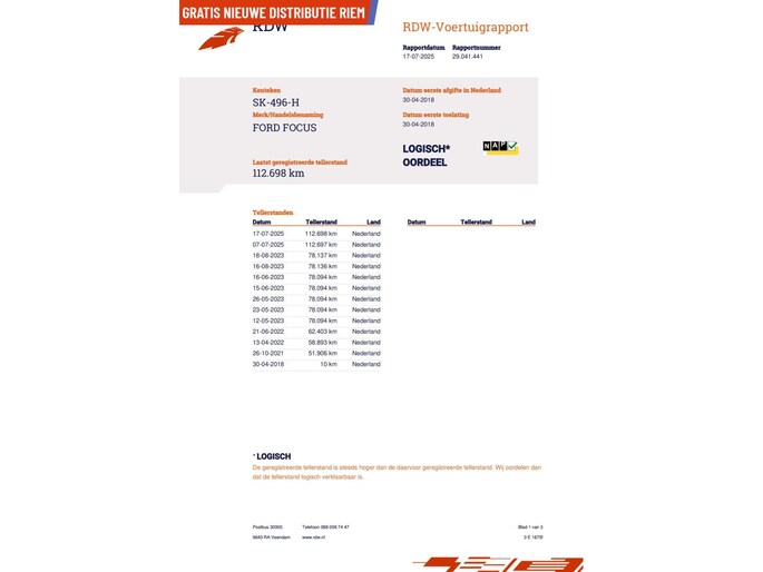 Kilometerstand gecontroleerd