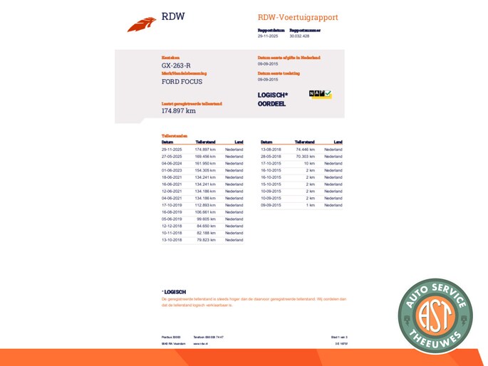 Kilometerstand gecontroleerd