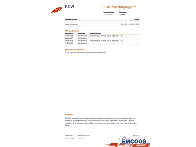 Kilometerstand gecontroleerd