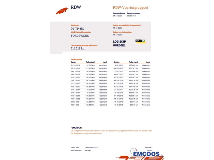 Het NAP-weblabel bevestigt de juistheid van de kilometerstand.