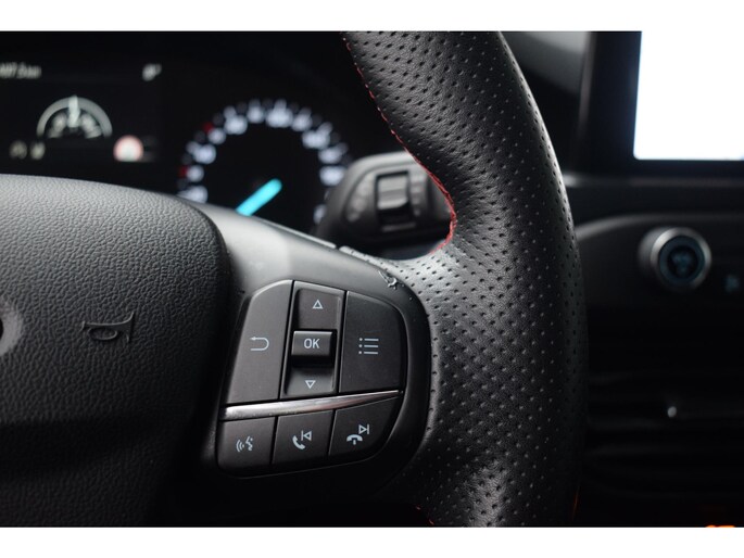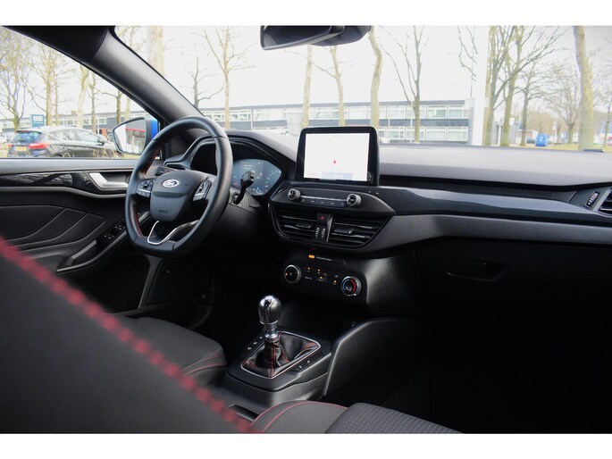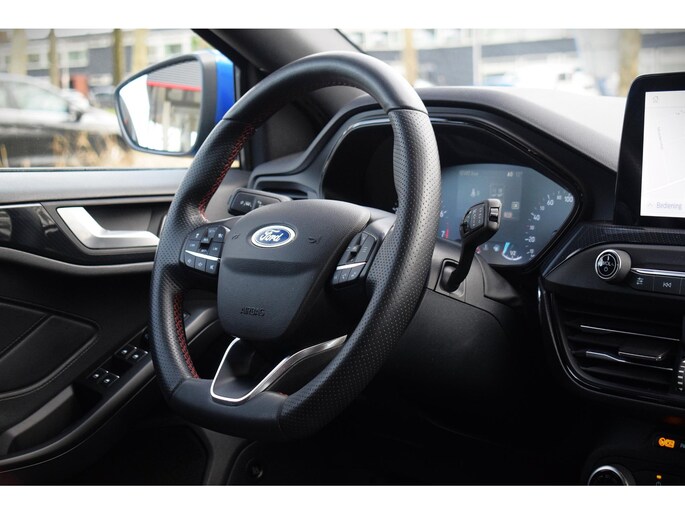 Met behulp van de achteruitrijcamera kunt u zo strak inparkeren als u maar wilt! Adaptive cruise control houdt de ingestelde snelheid vast en houdt afstand tot het voertuig voor u. Deze Ford Focus is 'connected'. Belangrijke functies worden permanent gemeten en zijn uit te lezen via een speciale app, ook op afstand. Smakelijke subs en knisperend hoog: het high performance audiosysteem geeft elke frequentie een kwaliteitsbehandeling voor akoestisch genieten onderweg. Heeft u de elektronische token op zak, dan herkent deze auto z'n baasje en de keyless start zorgt dat een druk op de startknop voldoende is. Geen sleutel meer nodig! Ook dashboard met spraakbediening, full map navigatiesysteem, DAB ontvangst, sportstuurwiel, airconditioning en centrale deurvergrendeling met afstandsbediening zijn aan boord.