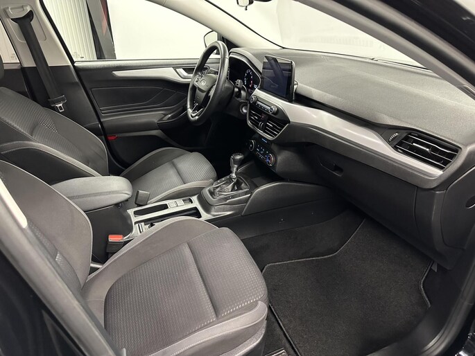 Functies activeren en storingen opsporen? Bij deze auto gaat het eenvoudig via uw smartphone. Overal en altijd. Laat u onderweg niet afleiden, de bediening van het audiosysteem en ook het full map navigatiesysteem gaat met knoppen op het stuur en met spraak. Natuurlijk is de audio-installatie voorzien van DAB-ontvangst. Omdat u nu eenmaal niet overal ogen heeft, is deze Ford Focus Wagon voorzien van een achteropkomend verkeer waarschuwing die registreert wanneer de afstand tot uw achterligger te krap is. De aanwezige parkeersensoren zijn de ultieme hulp om te laten weten hoeveel ruimte er nog is om te manoeuvreren. Kleine ritjes, grote reizen - altijd een relaxte aankomst dankzij de cruise control. Ook WIFI-hotspot, airconditioning, lederen stuur, isofix-aansluiting, centrale deurvergrendeling met afstandsbediening en bagage afdekhoes horen tot de voorzieningen op deze auto.