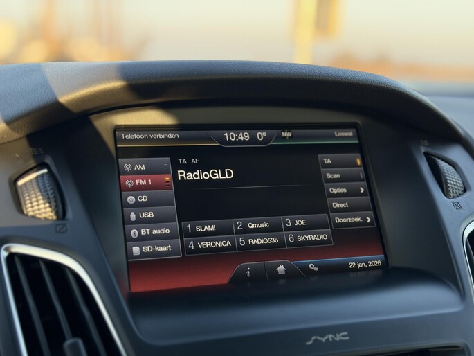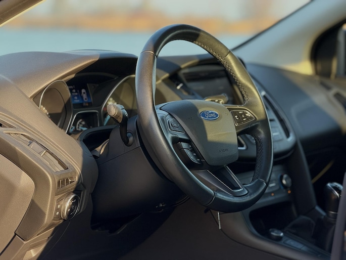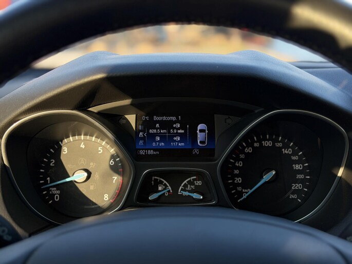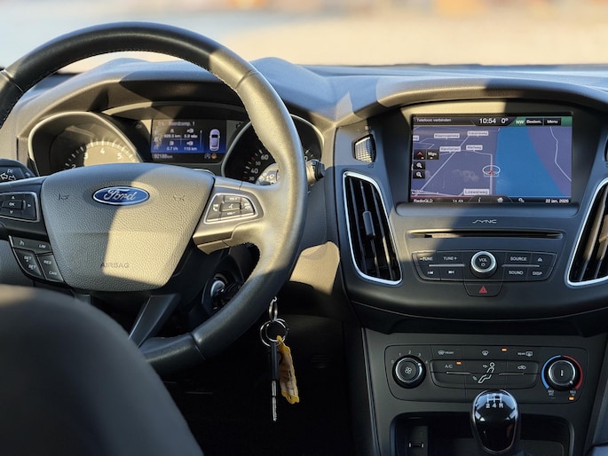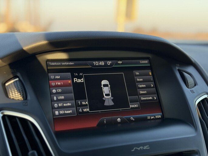 Naast de routeinformatie van het navigatiesysteem kunt u muziek via het audio-installatiesysteem ook online beluisteren via bluetooth. U kunt bij het inparkeren natuurlijk niet aan alle kanten ogen hebben. Daarom is deze Ford Focus voorzien van parkeersensoren! Niet te snel, niet langzaam maar precies goed: laat dat maar over aan de cruise control. Het hele jaar door zorgt airconditioning voor een prettige temperatuur. De uitrusting van deze Ford is met dashboard met spraakbediening, lederen stuur en versnellingspook, centrale deurvergrendeling met afstandsbediening en boordcomputer behoorlijk compleet.