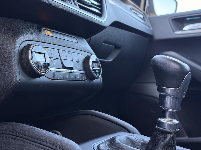 Altijd achter zicht, nooit meer nekkramp! De achteruitrijcamera maakt het supermakkelijk. Adaptive cruise control houdt de ingestelde snelheid vast en houdt afstand tot het voertuig voor u. Deze Ford Focus Wagon is voorzien van remote services. Via uw smartphone bedient u diverse functies ook op afstand en krijgt u informatie over de status van uw auto. Een optie die de veiligheid verhoogt, is de bediening vanaf het stuur van het audiosysteem (met DAB-radio!) en het full map navigatiesysteem. Als u wilt kunt u beiden zelfs met uw stem bedienen. Het spreekt voor zich dat een auto als deze ook van automatische airconditioning is voorzien. Deze auto is voorzien van regensensor, keyless entry, automatisch dimmende binnenspiegel, bagage afdekhoes, boordcomputer en lederen versnellingspook.