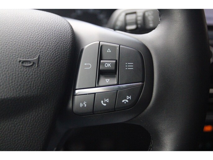 Connected Services zorgen ervoor dat de belangrijkste functies en data van de auto altijd en overal te checken zijn. Gewoon via de app op de smartphone. U bedient het full map navigatiesysteem en het audiosysteem met DAB-radio via knoppen op het stuur, of zelfs met uw stem. Zo kunt u steeds uw aandacht gericht houden op de weg. De achteropkomend verkeer waarschuwing bewaakt de afstand tot achterliggers en geeft een signaal als er te weinig ruimte is. Boem is ho? Niet bij deze Ford Focus. De piepjes van de parkeersensoren waarschuwen u op tijd voor obstakels. Niet te snel, niet langzaam maar precies goed: laat dat maar over aan de cruise control. De uitrusting van deze Ford is met WIFI-hotspot, keyless entry, airconditioning, automatisch dimmende binnenspiegel, lederen stuur en centrale deurvergrendeling met afstandsbediening behoorlijk compleet.