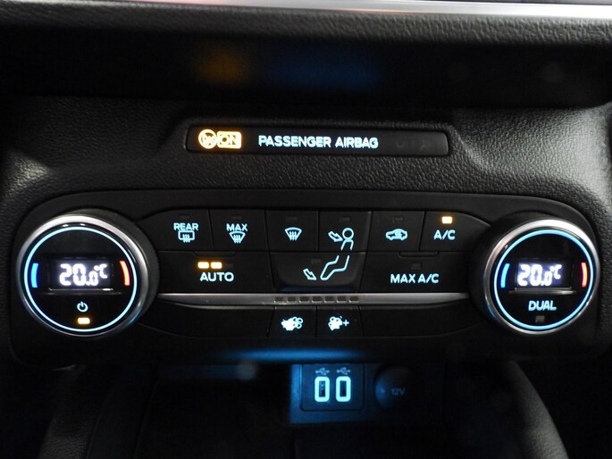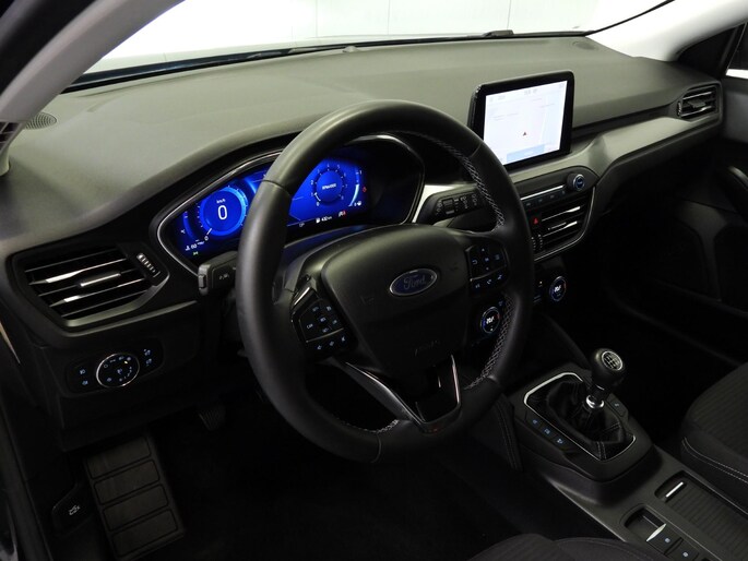 De nieuwste veiligheidssystemen komen in deze Ford Focus samen. Het Lane-keeping systeem let constant op en waarschuwt of corrigeert als u onoplettend over de lijnen van de rijstrook gaat. De sensor van het forward collision warning-systeem registreert permanent de afstand tot voorliggers en grijpt in als een botsing dreigt. Ook helpen het hill hold functie, brake assist en bandenspanningcontrolesysteem, uw rit tot een veilige rit te maken.