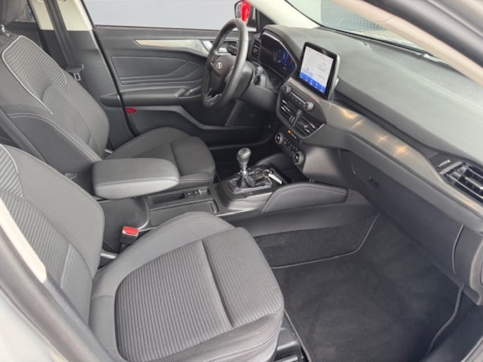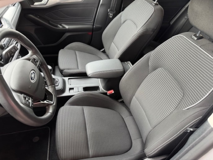 Met de achteruitrijcamera ziet u precies wat er achter de auto gebeurt. Deze Ford FOCUS Wagon is 'connected'. Belangrijke functies worden permanent gemeten en zijn uit te lezen via een speciale app, ook op afstand. U kunt tijdens de rit uw ogen steeds op de weg houden, want het audiosysteem (met DAB!) en het full map navigatiesysteem kunt u bedienen vanaf het stuur of met spraak. Ook over uw schouder ziet u onderweg niet alles wat er aan de achterzijde gebeurt. Daarom heeft deze Ford FOCUS Wagon een achteropkomend verkeer waarschuwing. De automatische airconditioning zorgt voor een behaaglijk klimaat in de auto. En dan is deze auto ook nog eens voorzien van WIFI-hotspot, regensensor, cruise control, keyless entry, automatisch dimmende binnenspiegel en lederen stuur.