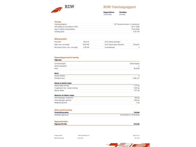 | Carrosserie | Stationwagen (5 deuren) |