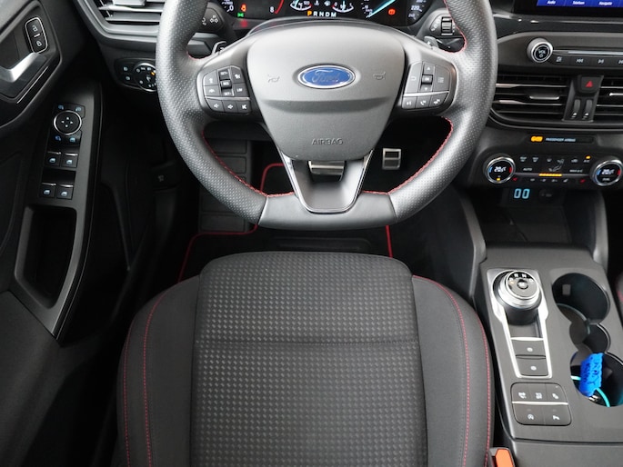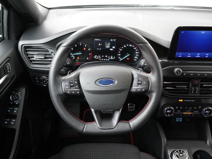 Parkeren wordt veilig en gemakkelijk in deze Focus door de camera achter en de parkeersensoren voor en achter. Tijdens het rijden wordt u gewaarschuwd voor auto's die in uw dode hoek rijden. Het Winter Pack maakt koude dagen aangenaam. Door de verwarmde voorruit hoeft u niet meer te krabben en de stoel- een stuurwielverwarming maken het meteen aangenaam in de auto. De ST-Line heeft een aangepast onderstel waardoor de auto nog strakker stuurt. Komt u de wegligging en het comfort van de Focus gerust testen. We zetten de auto graag voor u klaar.