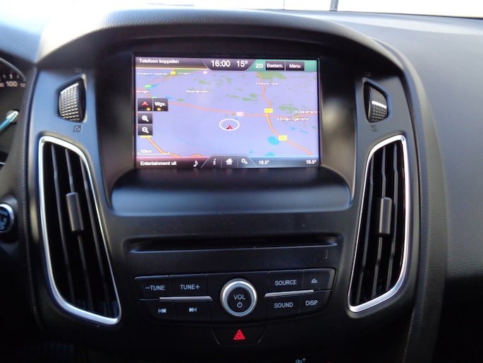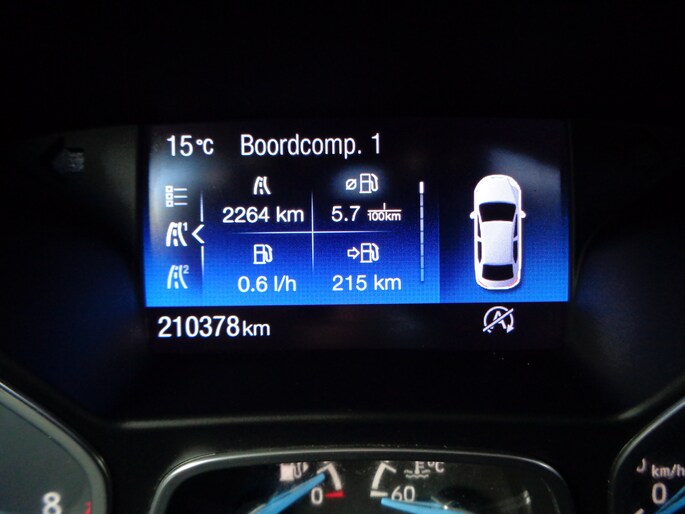 U kunt tijdens de rit uw ogen steeds op de weg houden, want het audio-installatiesysteem en het navigatiesysteem kunt u bedienen vanaf het stuur of met spraak. De auto is ook uitgevoerd met automatische airconditioning. Ervaar het comfort van inparkeren met parkeersensoren. Deze auto laat zich moeiteloos in elk parkeervak manoeuvreren. Het drukke verkeer eist onderweg al uw aandacht op. Daarom is het goed dat deze Ford is voorzien van diverse systemen die u assisteren tijdens de rit. Een automatisch inschakelbare verlichting neemt het waar als het donker wordt of gaat schemeren, en schakelt dan automatisch de verlichting in. Op dezelfde manier "ziet" de regensensor de eerste spatjes regen en schakelt dan de ruitenwissers in, en als het harder gaat regenen zet hij de ruitenwissers ook in een snellere stand. Zuinig zoeven, dat kan deze auto dankzij de aanwezige cruise control. De uitrusting van deze Ford is met automatisch dimmende binnenspiegel, centrale deurvergrendeling met afstandsbediening en boordcomputer behoorlijk compleet.