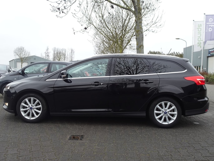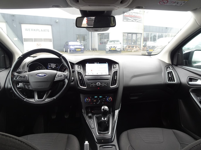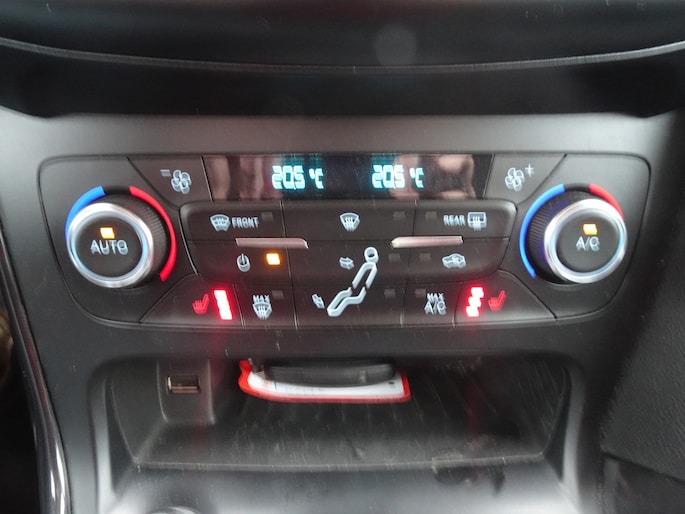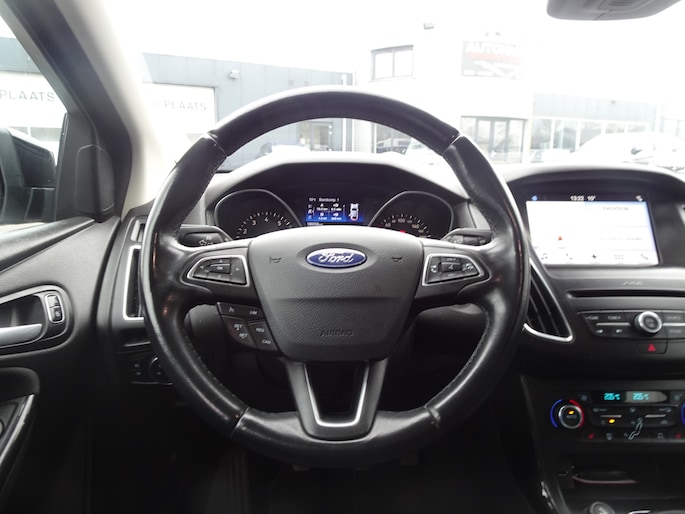 Natuurlijk is er ook automatische airconditioning aanwezig. Superstrak parkeren wordt een eitje dankzij de parkeersensoren. De automatisch inschakelbare verlichting en regensensor zorgen dat onderweg automatisch de verlichting en de ruitenwissers worden ingeschakeld. Daarmee nemen ze u veel werk uit handen. Relaxt rijden is meegeleverd in de vorm van cruise control. Met de keyless entry ontgrendelt deze Ford Focus Wagon zich automatisch als u het portier wilt openen. Ook is de Ford uitgerust met: dashboard met spraakbediening, navigatiesysteem, automatisch dimmende binnenspiegel, lederen stuur, centrale deurvergrendeling met afstandsbediening en boordcomputer.