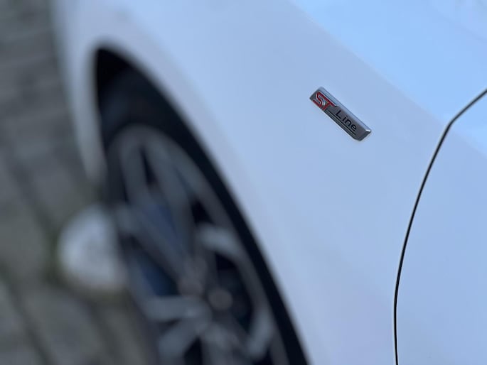Uitzonderlijk mooie Ford Focus ST Line met vele opties waaronder LED koplampen, Winterpakket, Navigatiesysteem en 18" Velgen.