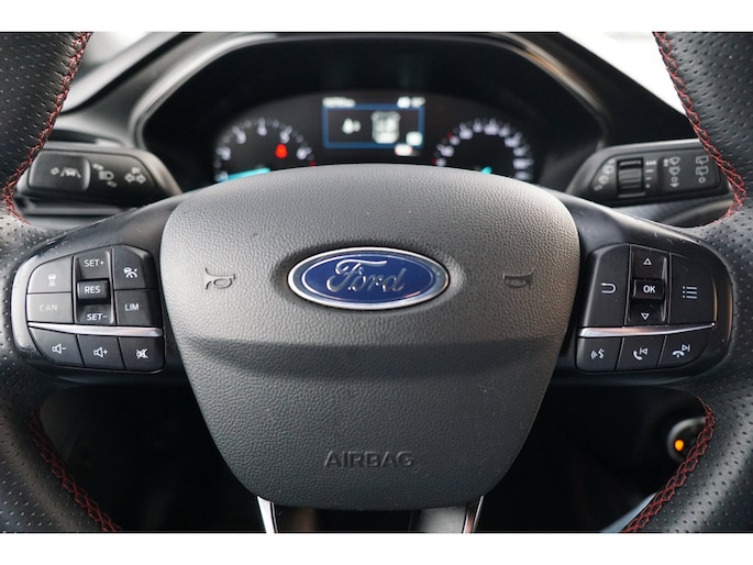 Go Further, is het motto bij Ford. Dit is uw kans om ook die extra stap te maken. De aandrijving van deze Ford wordt verzorgd door een driecilinder motor en een handgeschakelde zesversnellingsbak. Comfort en een gevoel van luxe: dat geeft de heerlijke stoelverwarming. Deze Ford Focus Wagon heeft een verwarmd stuurwiel. Nooit meer koude handen onderweg. Tot de uitrusting van deze Ford behoren ook 17 inch lichtmetalen velgen, LED koplampen, sportonderstel, dakspoiler, in delen neerklapbare achterbank en LED-achterlichten.