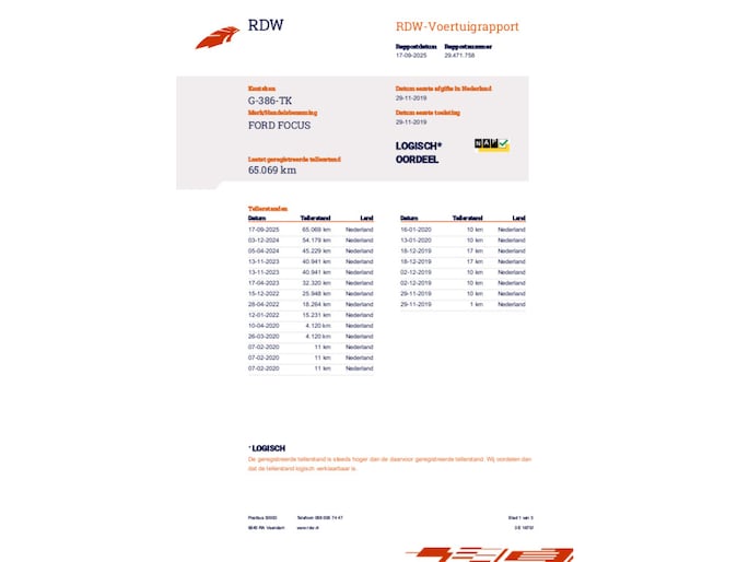 Kilometerstand gecontroleerd