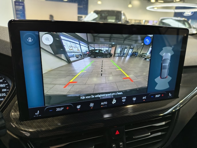 Deze Ford heeft parkeersensoren voor en achter om het parkeren gemakkelijk en veilig te maken. Achter is zelf een camera gemonteerd zodat u bij het achteruit rijden precies kunt zien wat u doet. Het automatische noodremsysteem kan ingrijpen bij een naderende aanrijding. Op die manier kan de auto een fout van de bestuurder corrigeren en een aanrijding voorkomen of de impact van de aanrijding verminderen. Bij een aanrijding belt de auto zelf met de hulpdiensten, ook als er geen telefoon is aangesloten. De locatie wordt dan ook meegestuurd. Zo kan de auto zelf hulp inschakelen, ook als u dat zelf niet meer kunt. Via een lampje in beide buitenspiegels wordt u gewaarschuwd voor verkeer in uw dode hoek.