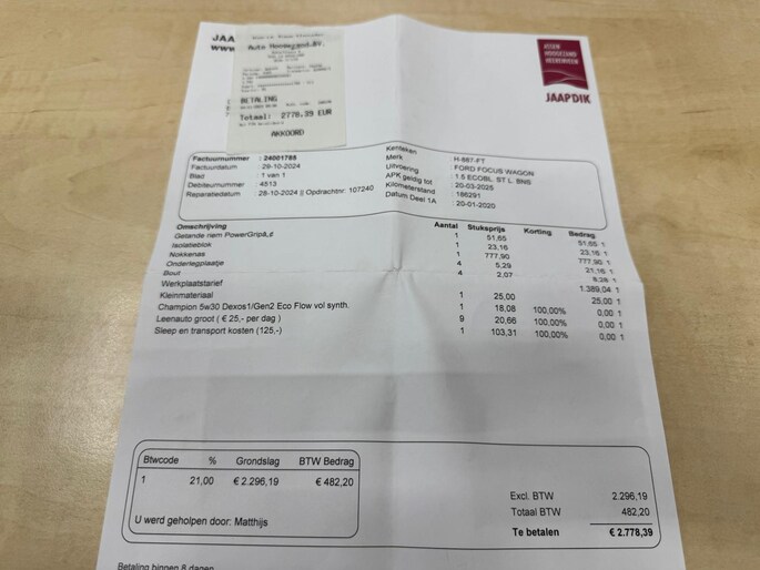 Kilometerstand gecontroleerd