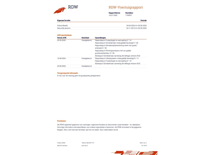 De kilometerstand is gegarandeerd. Wij zijn erkend lid van de stichting Nationale Auto Pas.