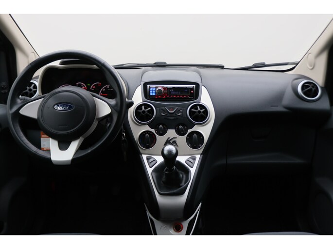 Het karaktervolle uiterlijk van de Ford Ka doet niets af aan het feit dat dit een comfortabele en bijzonder praktische auto is. De auto is van het bouwjaar 2010 en is van de eerste eigenaar. Met zijn pittige benzinemotor stuurt u deze auto gemakkelijk en vlot door het verkeer. Zoals de meeste eigentijdse auto's is ook deze Ford Ka voorzien van een geavanceerd start-stop systeem. Bij stilstand gaat de motor uit en start weer zodra u verder gaat. In deze auto profiteert u onder andere ook van: 15 inch lichtmetalen velgen, getint glas en in delen neerklapbare achterbank.