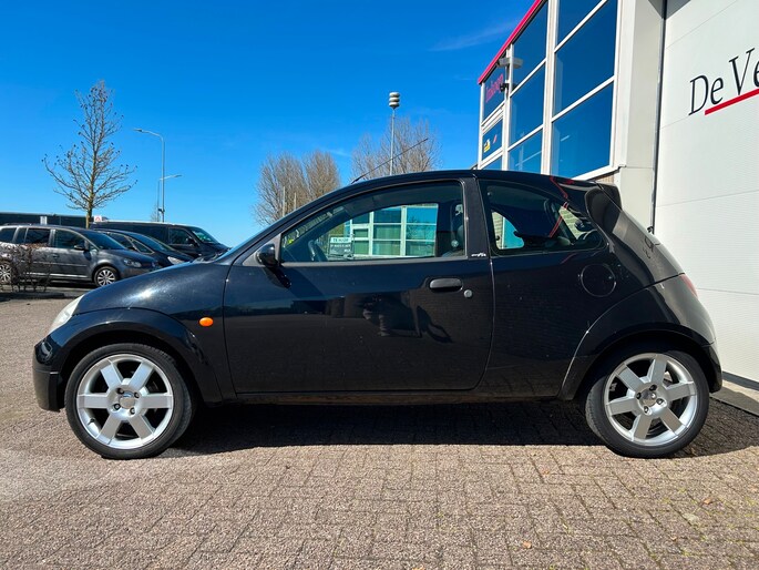 Ford Ka 1.6 SportKa (95pk) met lederen bekleding, airco en radio. Rijdt, remt en schakelt goed. Sportieve en betrouwbare auto, direct klaar voor gebruik!