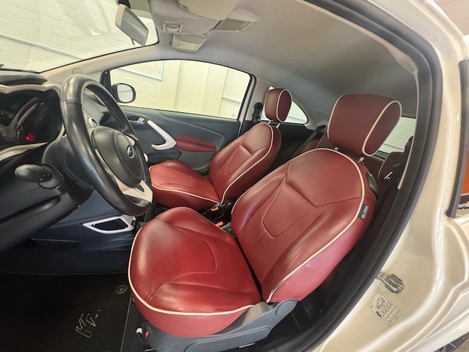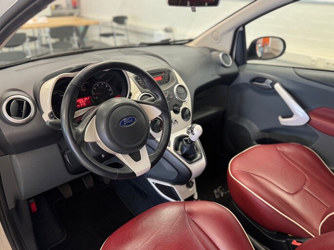 Ford is synoniem met rijplezier. Achter het stuur van deze Ka ervaart u zelf wat dat precies betekent. De aandrijving van deze Ford wordt verzorgd door een viercilinder motor en een handgeschakelde vijfversnellingsbak. Ouderwets vakmanschap en natuurlijke materialen komen samen in het lederen interieur. Ga samen met uw bijrijder lekker zitten in de verwarmbare voorstoelen. Zuinig zijn met brandstof, belangrijker dan ooit. Het ingebouwde start-stopsysteem zorgt ervoor dat de motor uit gaat bij stilstand en weer start als u verder wilt. Tot de uitrusting van deze Ford behoren ook 15 inch lichtmetalen velgen, extra getint glas en in delen neerklapbare achterbank.