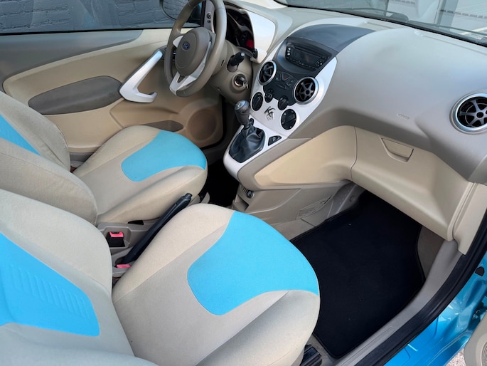 Met zijn 51 kW (70 PK) en handgeschakelde 5-versnellingsbak combineert deze Ka dynamisch rijgedrag met gebruiksgemak. Binnenin geniet je van comfort zoals airco, elektrische ramen voor, en een radio-CD/MP3-speler, Het interieur is praktisch vormgegeven en biedt ruimte voor 4 personen. Extra veiligheid wordt geboden door mistlampen voor, bestuurders- en passagiersairbag, en het ABS-systeem.