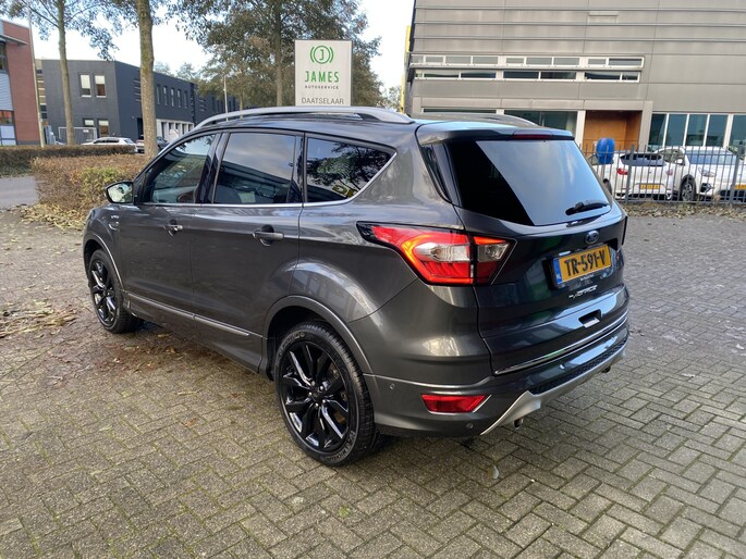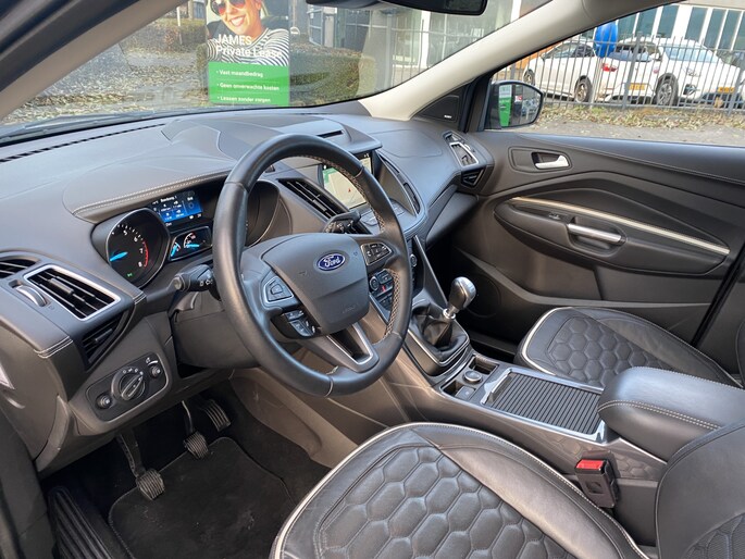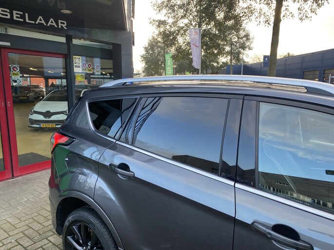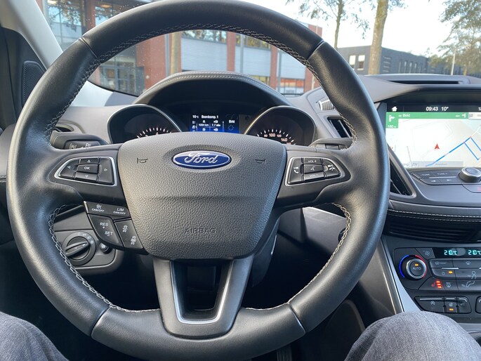 Hij zorgt voor een ontspannen rijervaring, deze Ford Kuga. Het is een auto uit 2018. De aandrijving van deze Ford wordt verzorgd door een viercilinder benzinemotor en een handgeschakelde versnellingsbak. Deze Ford is voorzien van een mooie en comfortabele lederen bekleding. Deze Ford Kuga heeft verwarmbare voorstoelen, voor zowel bestuurder als bijrijder. Chauffeur en bijrijder zitten stabiel in de scherpe bochten door de sportstoelen. Het panoramadak zorgt voor maximale lichtinval en kan worden geopend voor extra ventilatie. De elektrische achterklep opent met een druk op de knop, zodat u gemakkelijk toegang heeft tot de bagageruimte. Als de ‘r′ in de maand zit, komt zo′n verwarmd stuurwiel als geroepen! Dankzij de xenonverlichting profiteert u in het donker van een krachtige en heldere lichtbundel. Bij de uitrusting van deze auto horen onder meer 18 inch lichtmetalen velgen, aluminium dakrailing, donker getint glas achter, LED-achterlichten, verstelbare lendensteunen, metallic lak, elektrisch bediende ramen, elektrisch inklapbare buitenspiegels, LED-dagrijverlichting en in delen neerklapbare achterbank.