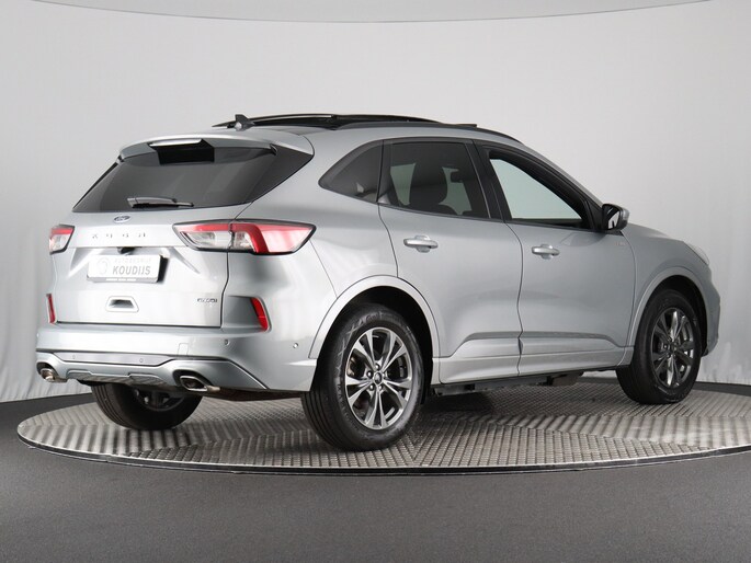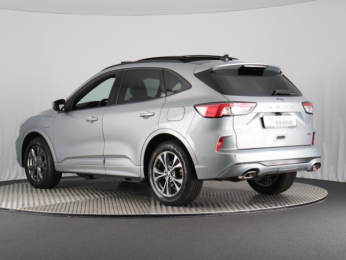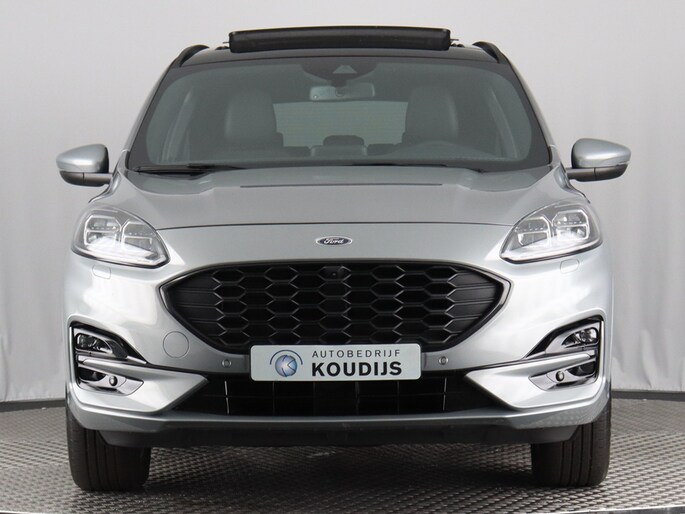 Ford huldigt het principe 'Go Further'. En dat betrekken ze ook op hun auto's zelf. Zuinig in brandstof, innovatieve toepassingen - Ford heeft veel te bieden. De uitstekende prestaties van deze auto komen van de viercilinder motor en de automatische transmissie. Lekker hoor, die verwarmbare voorstoelen. Helemaal op koude dagen. Comfortabel zitten, ook als de rit onstuimig is? Dat kan met de sportstoelen. Comfort, licht en het complete gevoel van ruimte wordt verzorgd door het elektrisch bediende panoramadak. De bagageruimte is toegankelijk via een comfortverhogende elektrische achterklep. Laat ze achterin ook maar genieten: deze Ford Kuga is uitgevoerd met een verwarmde achterbank. Bij de zeer complete uitrusting van deze auto behoren ook 18 inch lichtmetalen velgen, LED koplampen, sportonderstel, geluidsisolerende ramen, in delen neerklapbare achterbank en LED-achterlichten.