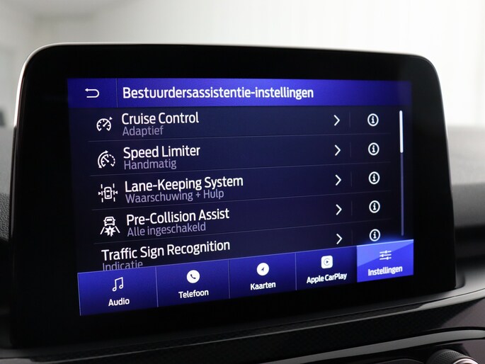 Met de nieuwste technologieën aan boord is deze Ford in staat om zelf te reageren op potentieel gevaarlijke situaties op de weg. Wat deze auto ook kan, is lezen. Hij 'leest' voor u de verkeersborden tijdens de rit en attendeert u erop door ze op het dashboard te projecteren. Een camera houdt de juiste koers binnen de rijstrook in de gaten en het Lane-keeping systeem corrigeert bij afwijkingen. Forward collision warning waarschuwt bij een dreigende aanrijding en vermindert de gevolgen van een ongeval. Bovenop deze veiligheidsfeatures heeft deze Ford bovendien dodehoekdetectie, hill hold functie, vermoeidheidsherkenning, autonoom remsysteem en bandenspanningcontrolesysteem.