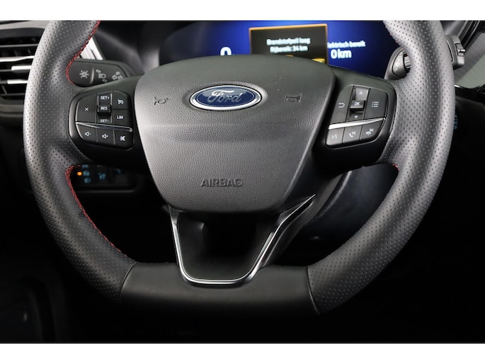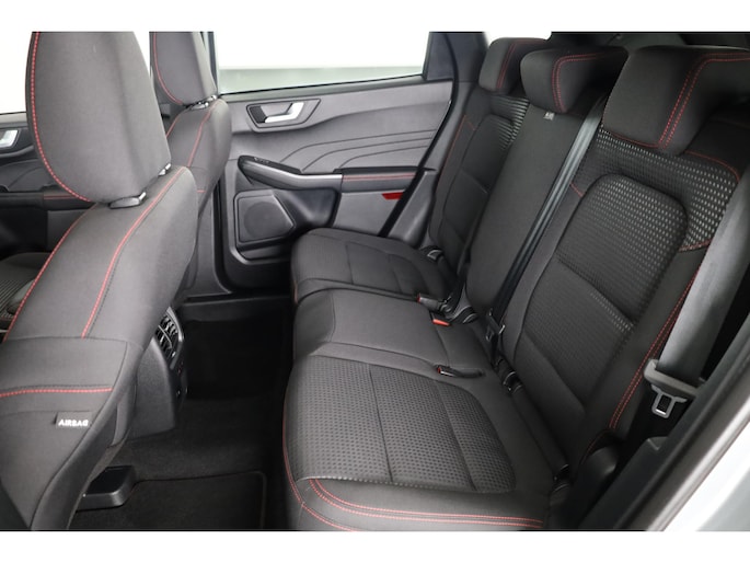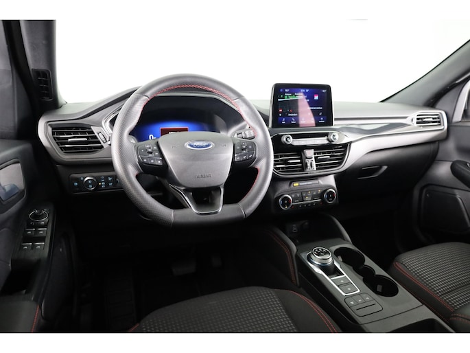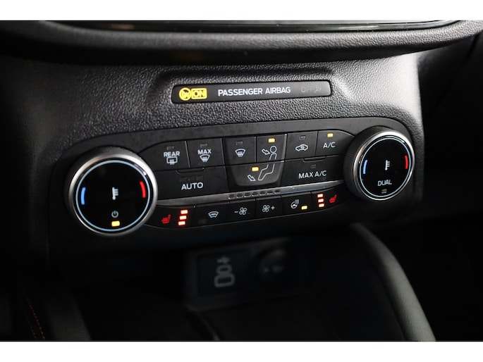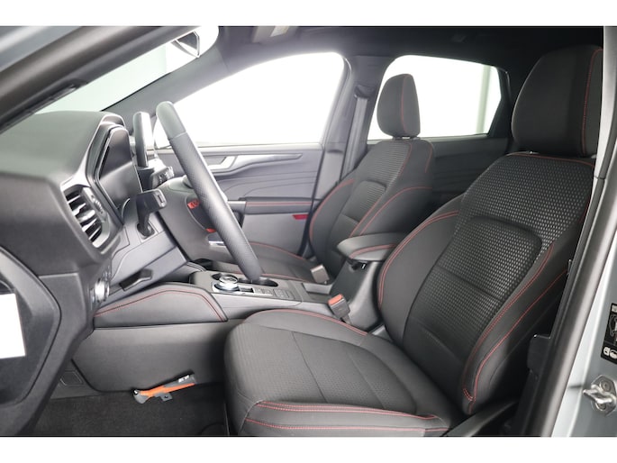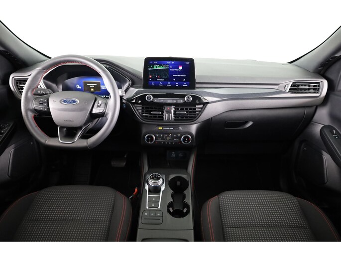 Altijd de benodigde functies in beeld? Het digitale dashboard zorgt ervoor. Kommaar-kommaar-kommaar, aldus de achteruitrijcamera. Iedere centimeter vrije ruimte komt haarscherp in beeld. Schadevrij inparkeren maar! De ingebouwde Connected Services vertellen je via de app alles over de status van de auto. Locatie, onderhoudsstatus, brandstofpeil en nog veel meer! Voor de veiligheid op de weg is het goed dat je je ogen op de weg kunt houden en jouw handen aan het stuur. Want het audiosysteem, met DAB-ontvangst, en het full map navigatiesysteem bedient je vanaf het stuurwiel en met spraakbediening. Deze Ford Kuga is een complete auto anno nu, en dat merk je. Bijvoorbeeld door de aanwezige draadloze oplaadmogelijkheid voor telefoons. En dan is deze auto ook nog eens voorzien van automatische airconditioning, regensensor, cruise control, keyless entry, automatisch dimmende binnenspiegel en boordcomputer.