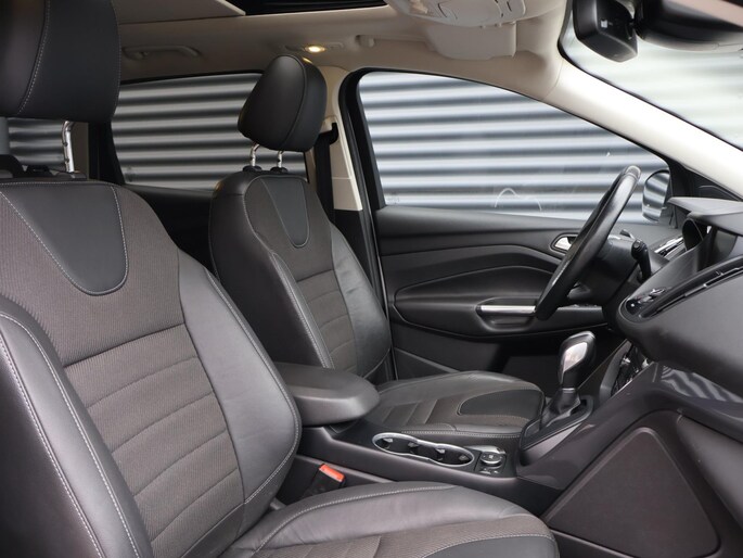 Rijden in een Ford betekent toekomstgericht de weg op gaan. Een stapje meer doen, de voorsprong pakken. Go Further, zoals ze zelf zeggen. De aandrijving van deze Ford wordt verzorgd door een viercilinder motor en een automatische transmissie. Deze Ford is voorzien van een mooie en comfortabele lederen bekleding. Behaaglijk onderweg zijn? Als bestuurder geniet u van de verwarmbare voorstoelen. Net als uw bijrijder! De sportstoelen houden u en uw bijrijder goed op z'n plek tijdens het accelereren en bij het nemen van scherpe bochten. Het interieur lijkt groter en ruimtelijker dankzij het elektrisch bedienbare glazen panoramadak. De elektrisch bedienbare achterklep opent met een druk op de knop. Xenonverlichting zorgt voor een krachtige en heldere lichtbundel. Verder is de Ford uitgerust met: 18 inch lichtmetalen velgen, halflederen bekleding, trailer assistent, extra getint glas, LED-achterlichten en verstelbare lendensteunen.
