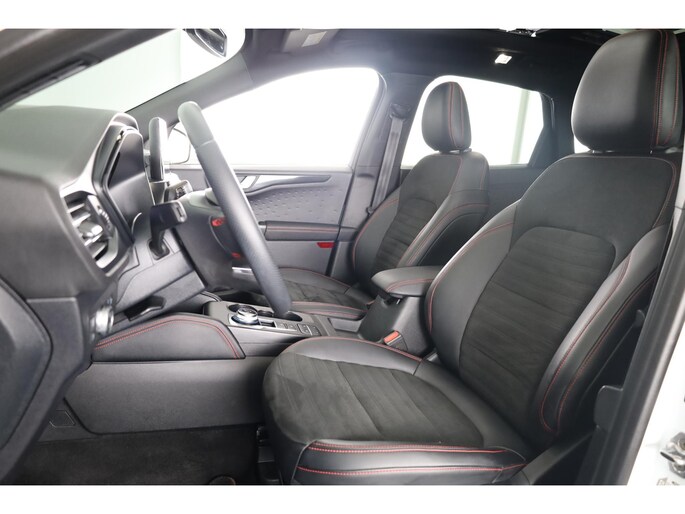 De nieuwste veiligheidssystemen komen in deze Ford Kuga samen. Je rijdt ook veiliger omdat deze auto voor jou de verkeersborden langs de weg kan lezen. De belangrijkste borden worden op jouw instrumentarium geprojecteerd, zodat je ze niet kunt missen. Het Lane-keeping systeem is altijd alert. Over de rijstrooklijntjes gaan is er niet bij. Het risico van een kop-staartbotsing wordt aanzienlijk verminderd door de forward collision warning. Met voorzieningen als head-up display, dodehoekdetectie, hill hold functie, vermoeidheidsherkenning, autonoom remsysteem en bandenspanningcontrolesysteem, ben je altijd veilig onderweg.