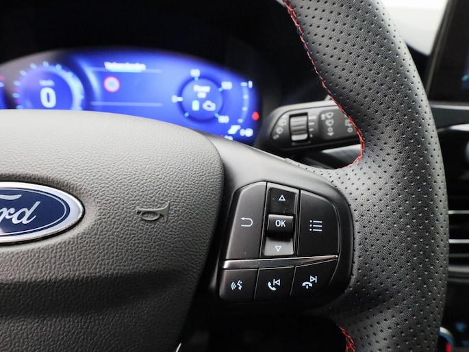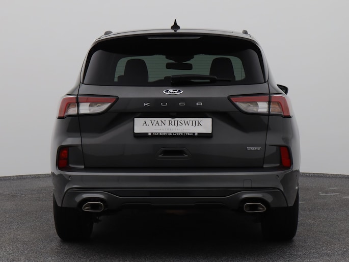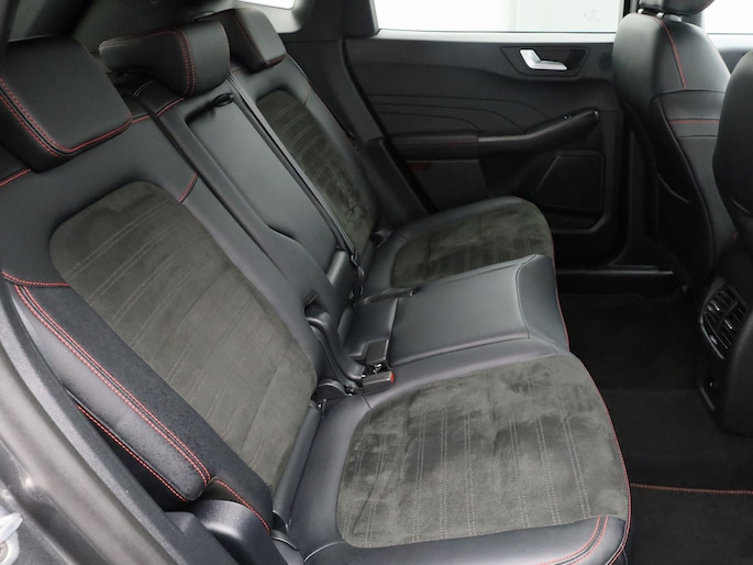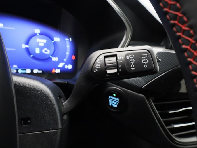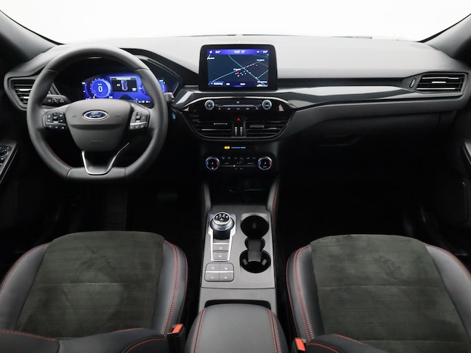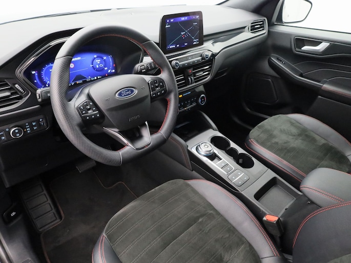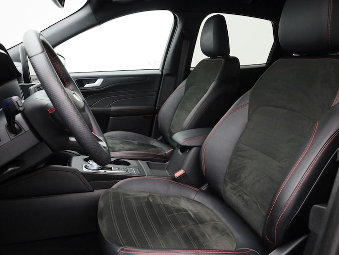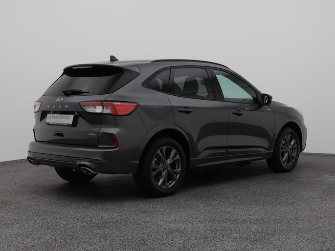 De Ford Kuga is gebouwd met hoogwaardige techniek en maakt het rijden van lange ritten, maar ook korte stukjes, tot een feestje. Een fraai voorbeeld van een hybride auto. Zuinig in brandstof door de pittige elektromotor en maximale actieradius dankzij de verbrandingsmotor. Sportief rijden stelt eisen aan een stevige zitpositie voor rijder en bijrijder. Vandaar de strakke sportstoelen! Een praktische extra is de elektrisch bedienbare achterklep die opent en sluit met een druk op de knop. De uitmonstering van deze auto wordt gecompleteerd door onder meer 18 inch lichtmetalen velgen, LED koplampen, sportonderstel, geluidsisolerende ramen, zwarte hemelbekleding en in delen neerklapbare achterbank.