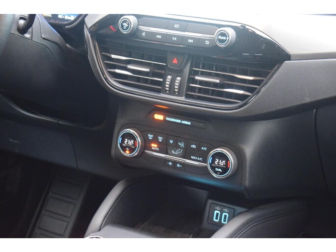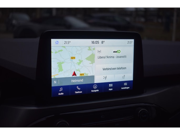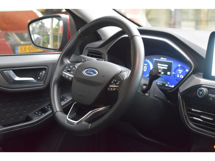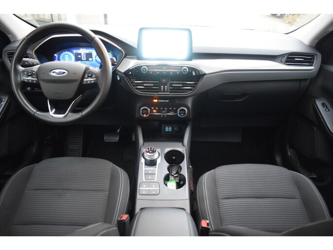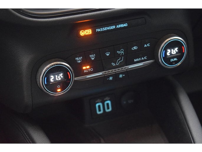 Het digitale dashboard is een perfecte bijrijder. Alles benodigde informatie is permanent zichtbaar of opvraagbaar. Zodra u naar de 'R' schakelt, gaat de achteruitrijcamera in werking en heeft u een perfect zicht op alles wat zich achter de auto afspeelt. Met adaptive cruise control houdt de auto zelfstandig afstand tot uw voorligger. Een veiligheidsverhogende optie waarmee u comfortabel onderweg bent. Gemak dient de mens. Dankzij de spraaksturing bedient u de belangrijkste functie met uw stem. Veilig en comfortabel rijden wordt nog eens versterkt door Connected Services, zodat u diverse vitale functies van de auto altijd kunt checken in de app. Met full map navigatiesysteem, automatische airconditioning, draadloos opladen, DAB ontvangst, regensensor en keyless entry is deze Ford helemaal compleet.
