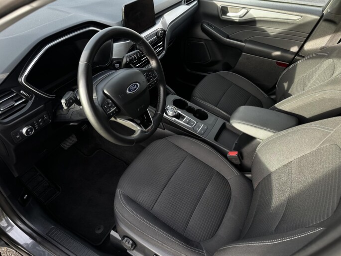 Met zijn inventieve techniek is de hybride Ford Kuga tegelijk comfortabel en zuinig met brandstof. Deze hybride auto heeft een sterke, zuinige elektromotor én een verbrandingsmotor. Kortom: uitstekende rijprestaties en een veel lager brandstofgebruik. De sportstoelen houden u en uw passagier stevig vast tijdens een snelle rit, maar bieden ook altijd comfortabele ondersteuning. Natuurlijk behoren 17 inch lichtmetalen velgen, LED-dagrijverlichting, extra getint glas, in delen neerklapbare achterbank, LED-achterlichten en verstelbare lendensteunen ook tot de uitrusting van deze complete auto.