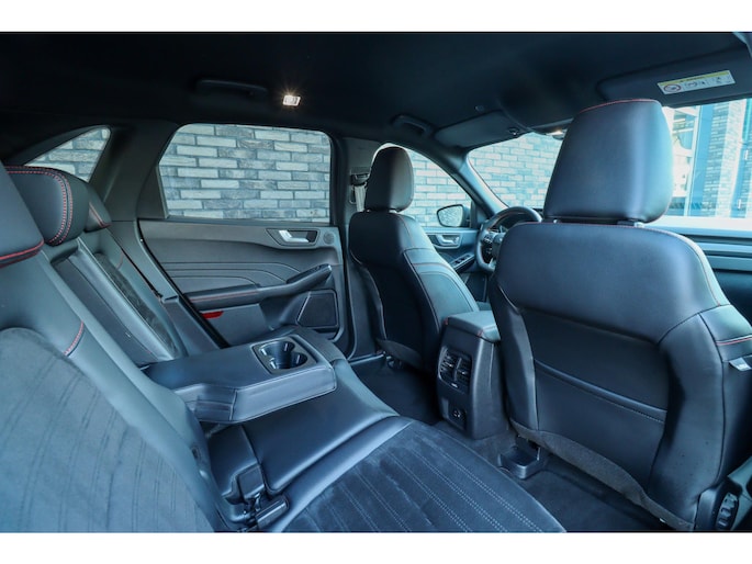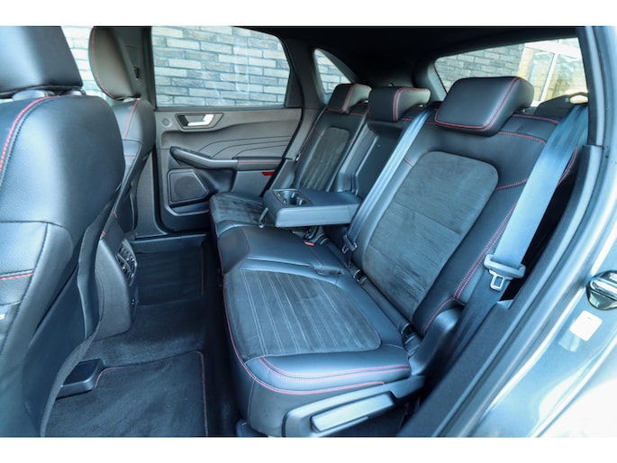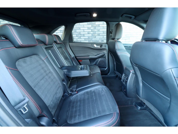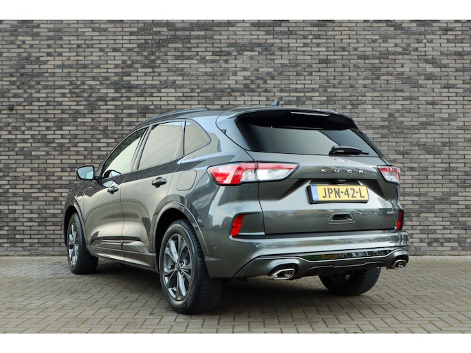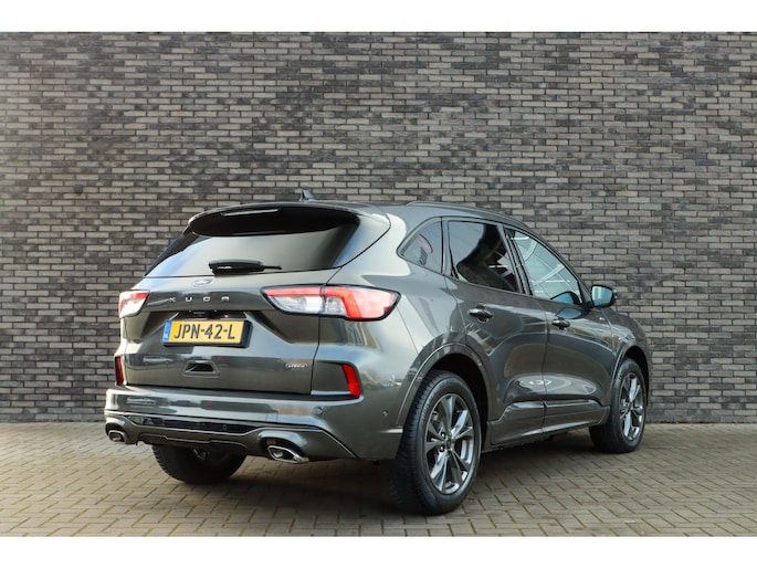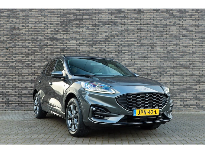 Ford is synoniem met rijplezier. Achter het stuur van deze Kuga ervaart u zelf wat dat precies betekent. De aanwezige hybride motor is een slimme extra. Tijdens het rijden en remmen laadt de accu bij, zodat de elektromotor de brandstofmotor kan ondersteunen of het zelfs helemaal overnemen. Dat scheelt in kosten! Doe maar luxe! Neem plaats in de verwarmbare voorstoelen en voel de weldaad in koude dagen. U blijft ook in de scherpe bochten goed ondersteund door de fraaie sportstoelen. De elektrisch bedienbare achterklep opent met een druk op de knop. Koude handen? Da's voorbij met het verwarmd stuurwiel. Pak aan! In deze Ford profiteert u onder andere ook van: 18 inch lichtmetalen velgen, LED koplampen, sportonderstel, geluidsisolerende ramen, in delen neerklapbare achterbank en LED-achterlichten.