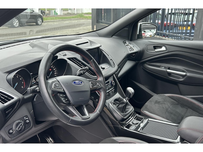 Neem plaats in de cockpit, start de motor en voel het vermogen. Met deze sportieve Ford Kuga heb jij altijd de controle. De aandrijving komt voor rekening van een benzinemotor en een handgeschakelde zesversnellingsbak. De sportstoelen geven het interieur een super strakke look. Met een druk op de knop gaat de elektrische achterklep open. Xenonverlichting zorgt voor een krachtige en heldere lichtbundel. Bij de zeer complete uitrusting van deze auto behoren ook 18 inch lichtmetalen velgen, sportonderstel, halflederen bekleding, extra getint glas, in delen neerklapbare achterbank en LED-achterlichten.