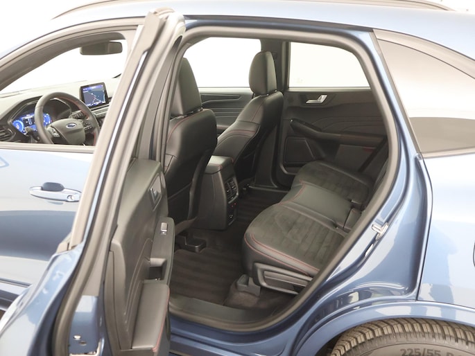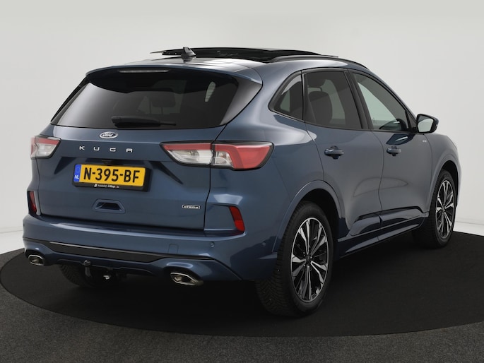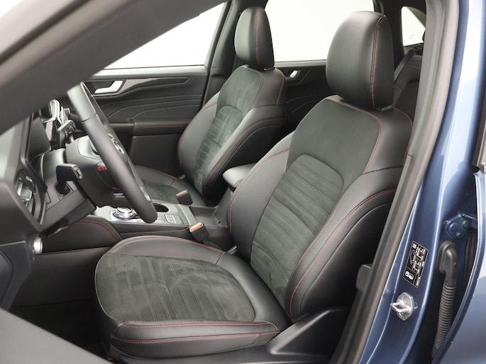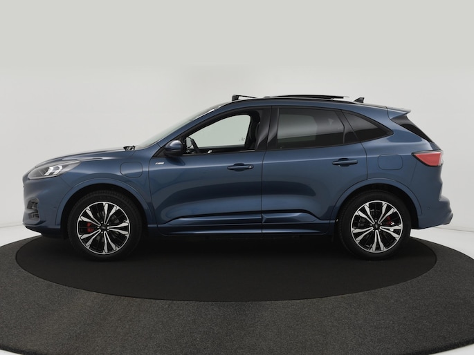 Met zijn dynamische eigenschappen belooft deze Ford Kuga u een heleboel rijplezier. Hij is ontwikkeld op een geavanceerd onderstel en biedt altijd een veilig weggedrag. De combinatie van een verbrandingsmotor en een elektromotor zorgt voor prima rij-eigenschappen en een laag brandstofverbruik. Deze auto levert de ultieme rijervaring met eersteklas functies zoals stoelverwarming, een verwarmbare achterbank en een verwarmbaar stuur. Goeie looks? Jazeker! Maar de sportstoelen zorgen ook voor een goed gesteunde en comfortabele zit. Voor extra lichtinval en een frisse luchtstroom zorgt het elektrisch bediende panoramadak. Met een druk op de knop gaat de elektrische achterklep open. Bij de uitrusting van deze Ford horen onder meer 19 inch lichtmetalen velgen, LED koplampen, sportonderstel, geluidsisolerende ramen, in delen neerklapbare achterbank en LED-achterlichten.