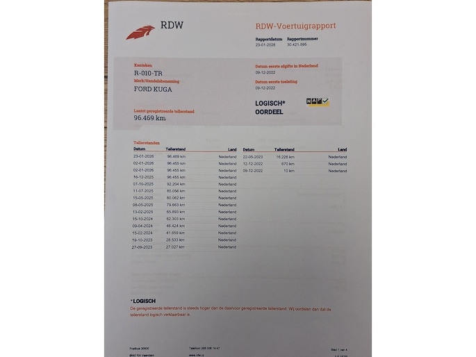 Kilometerstand gecontroleerd